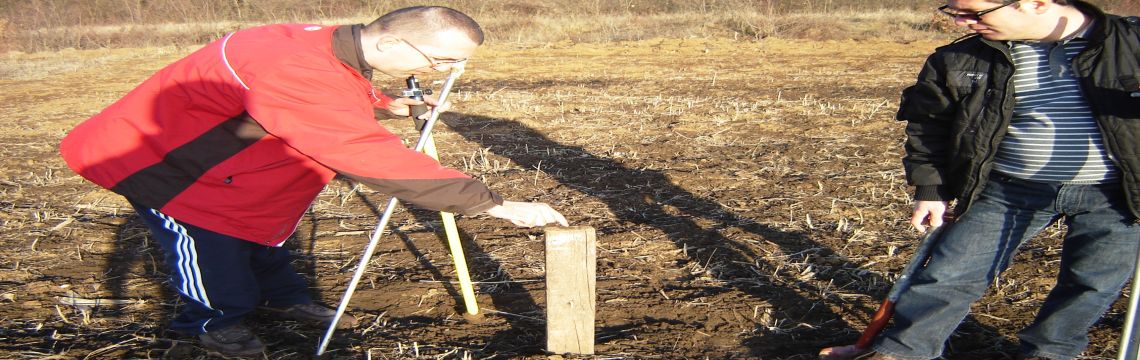Operatiune de trasare teren se executa dupa avizarea cadastrului si dupa obtinerea coordonatelor in Sistem stereografic 1970 si reprezinta marcarea conturului limitelor de proprietate prin tarusi (lemn/metal) sau borne din beton, si se finalizeaza prin printarea unui “Proces verbal de trasare”, semnat de ambele parti.